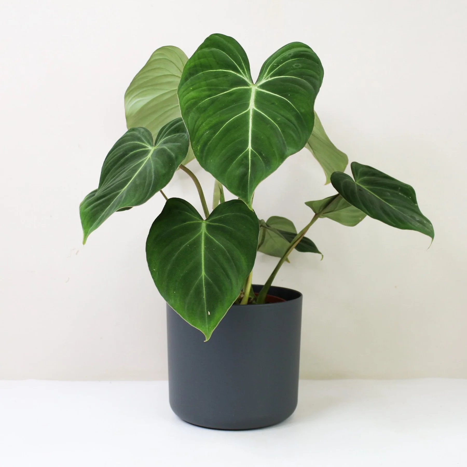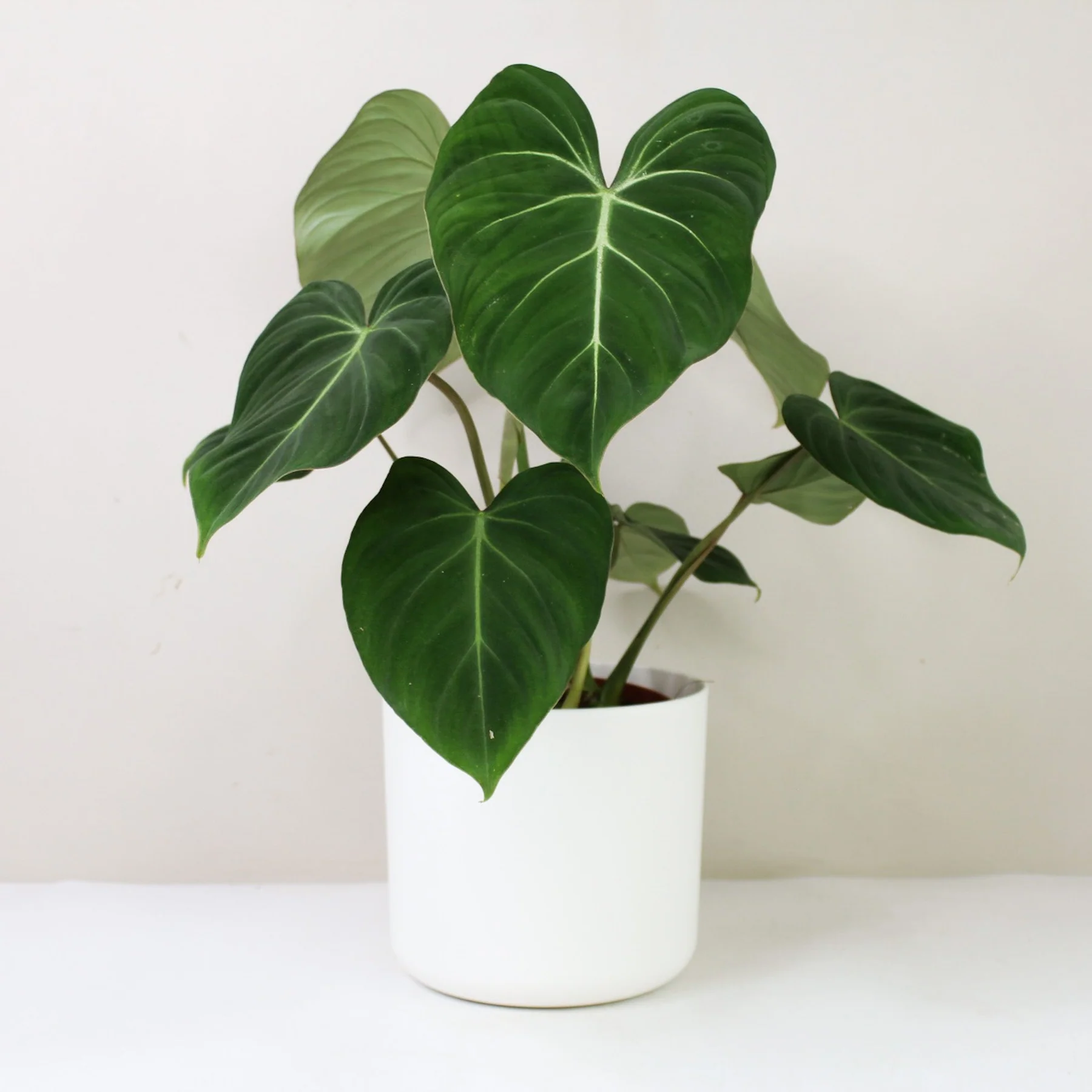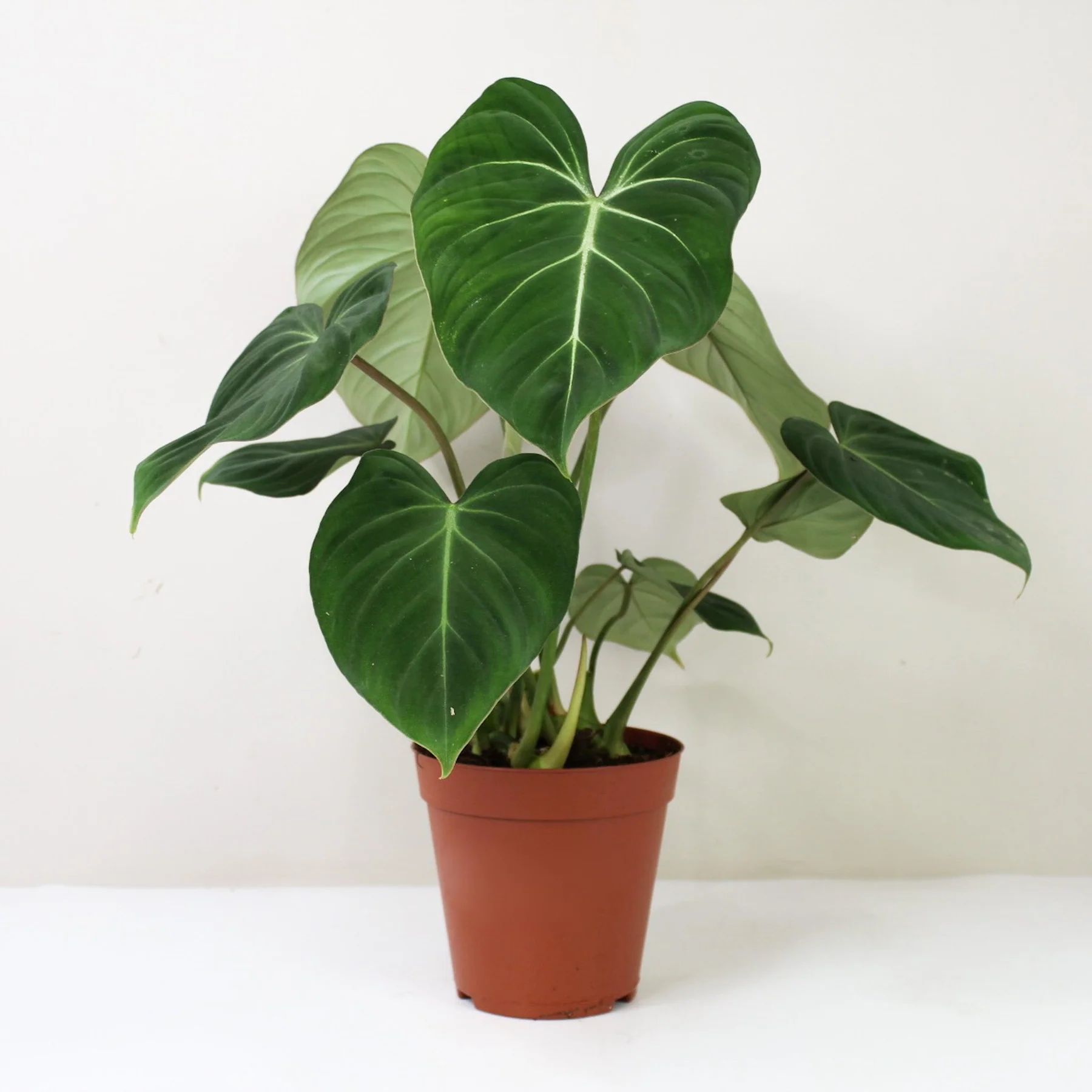 Philodendron Gloriosum – elegantiškas, šliaužiantis augalas su dideliais, širdies formos aksominiais lapais. Tamsiai žalia spalva kontrastuoja su ryškiomis, baltomis gyslomis, kurios sukuria išraiškingą ir švelnų vaizdą. Jo ramus, bet įspūdingas grožis puikiai dera tiek modernioje, tiek jaukioje aplinkoje, įnešdamas žalumos ir subtilios prabangos.